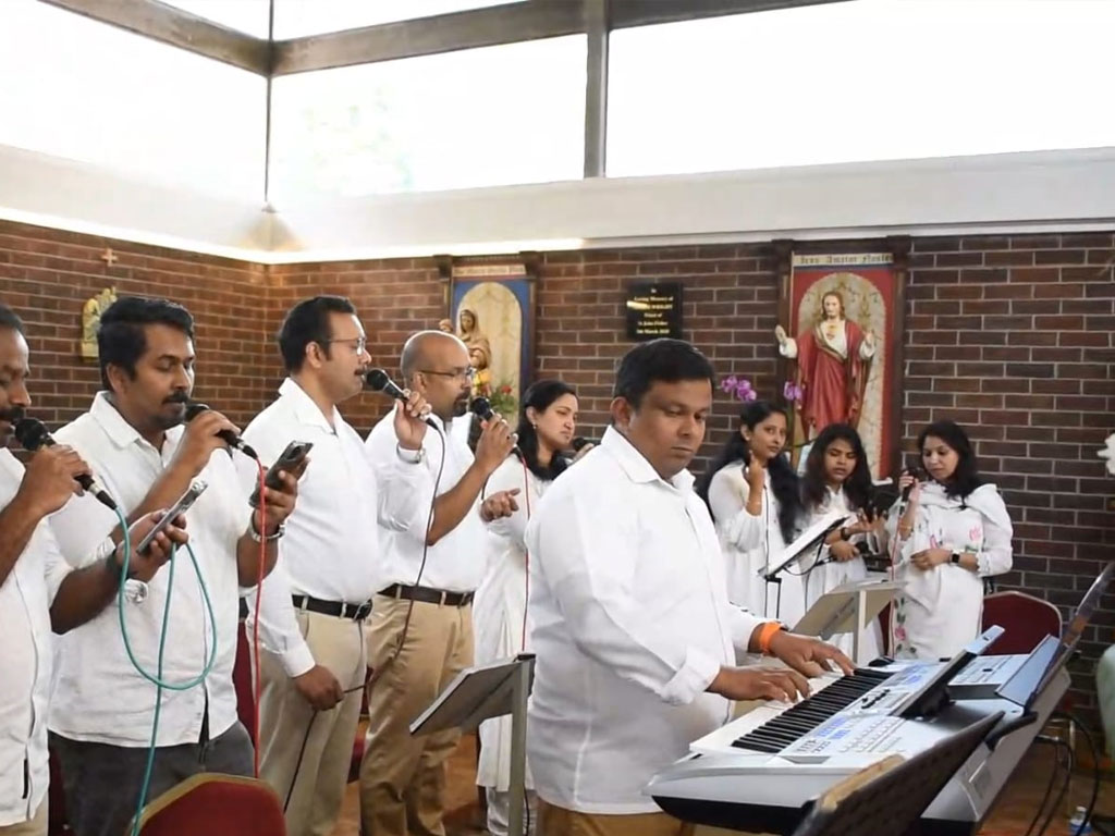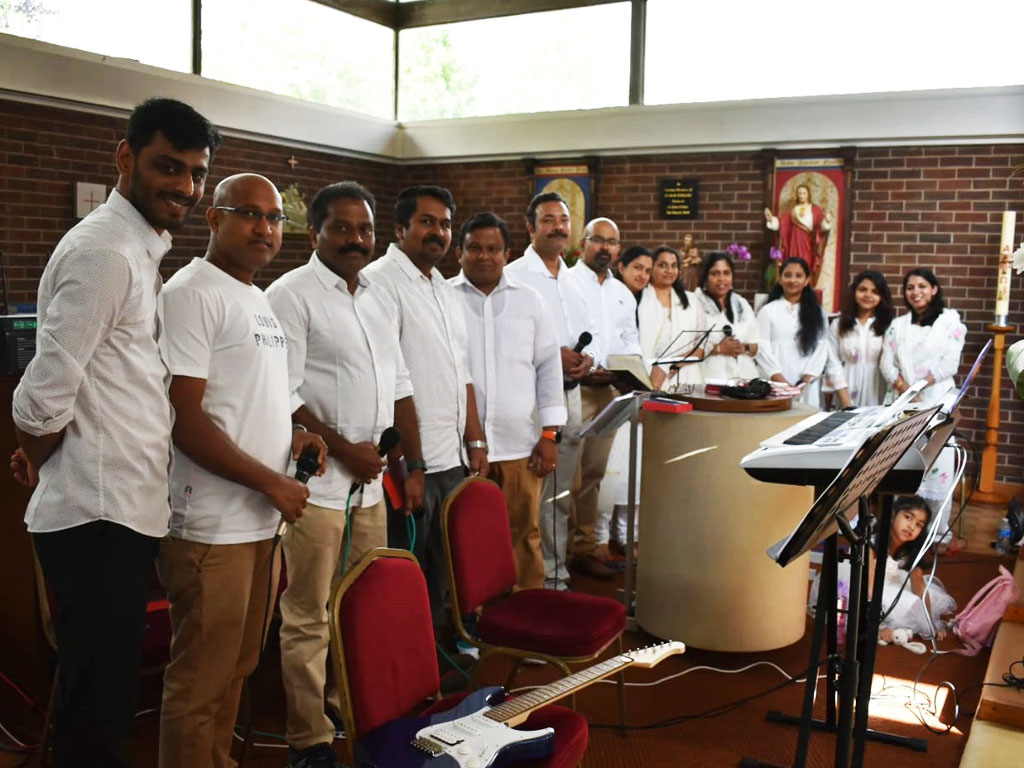 The choir service for the Holy Qurbana in Malayalam started in July 2005 with Biju Yohannan and Rosamma in the presence of Fr. Sebastian Arikkattu and the following December 2005, 3 singers joined the team. In September 2006 the church bought a new sound system for the choir which progressed with more members. Since 2021 the choir in Coventry moved a step ahead with live orchestration including keyboard and guitar. Now we come to a point where we have total 18 active members. Recently we got a rhythm composer as an added accomplishment for the live orchestra. With our parish Vicar Fr. Sebastian Namattathil's support, the choir undertakes timely practice sessions to bring in harmony for the Holy Qurbana.